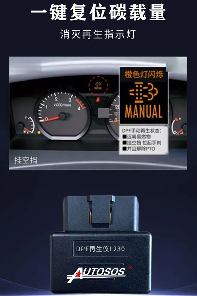 第三種服務(wù)再生,當(dāng)在車(chē)輛上無(wú)法執(zhí)行駐車(chē)再生時(shí),司機(jī)師傅可以選擇使用隨身攜帶的L230 DPF再生儀進(jìn)行一鍵再生,對(duì)于碳載量超標(biāo)無(wú)法執(zhí)行再生的可選擇執(zhí)行碳載量復(fù)位后再生。